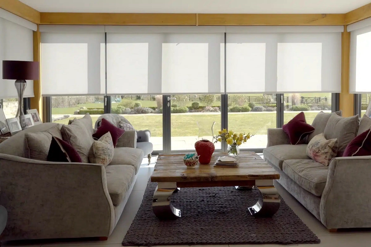 We fitted Lutron Triathlon Roller Shades, with fabric-wrapped fascia. These blinds have a battery-operated model which comes with a 5-year battery life. This product is truly industry-leading as the drive maintains consistent shade speed throughout the battery life cycle by monitoring voltage and compensating for fabric thickness.